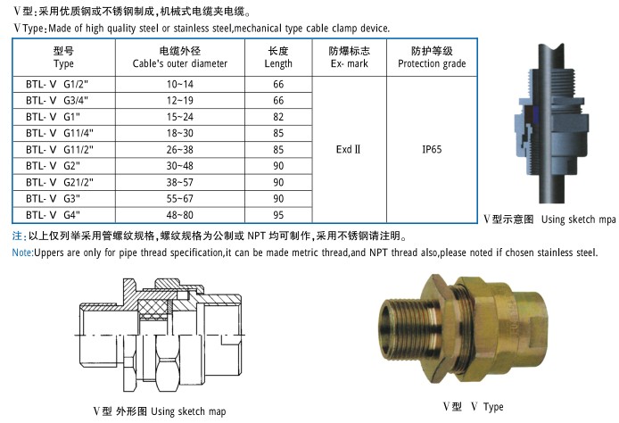 V型防爆电缆夹紧密封接头